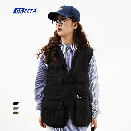 Sold outOREETA 2023秋季新款复古立体多口袋工装背心高街机能战术马甲男