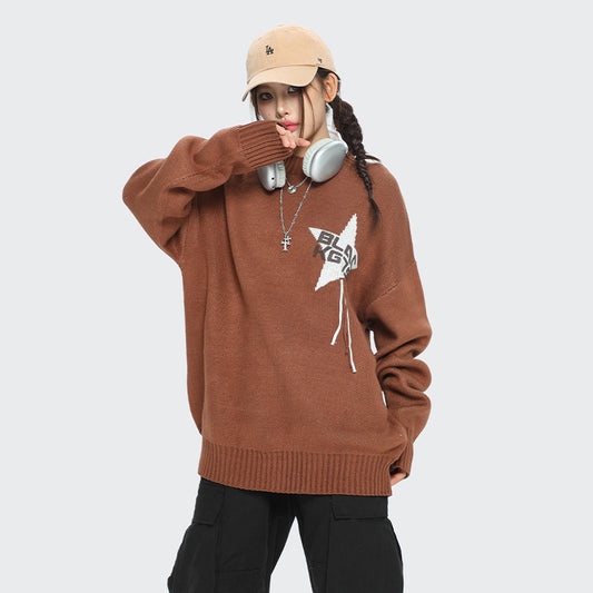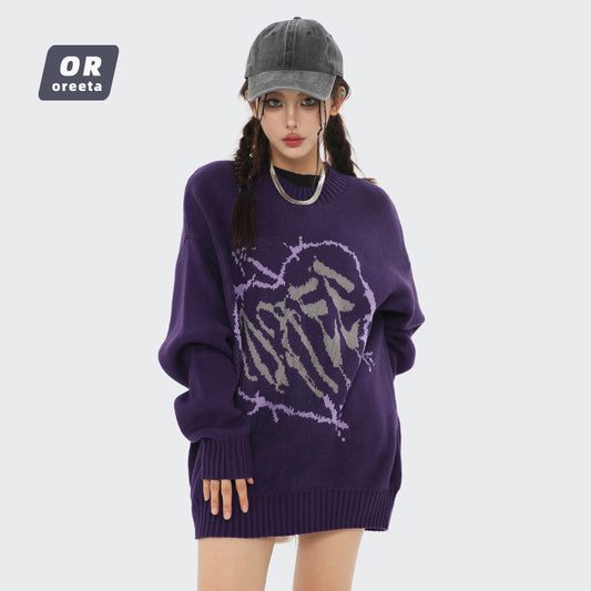 Sold outOREETA 2023秋冬新品美式复古色织长袖圆领针织衫男潮牌宽松毛衫