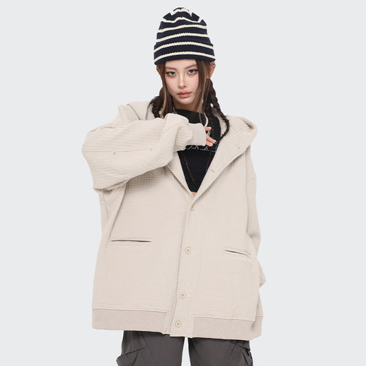Sold outOREETA 2023秋季新日系复古辑格压花宽松连帽外套男款机能冲锋衣