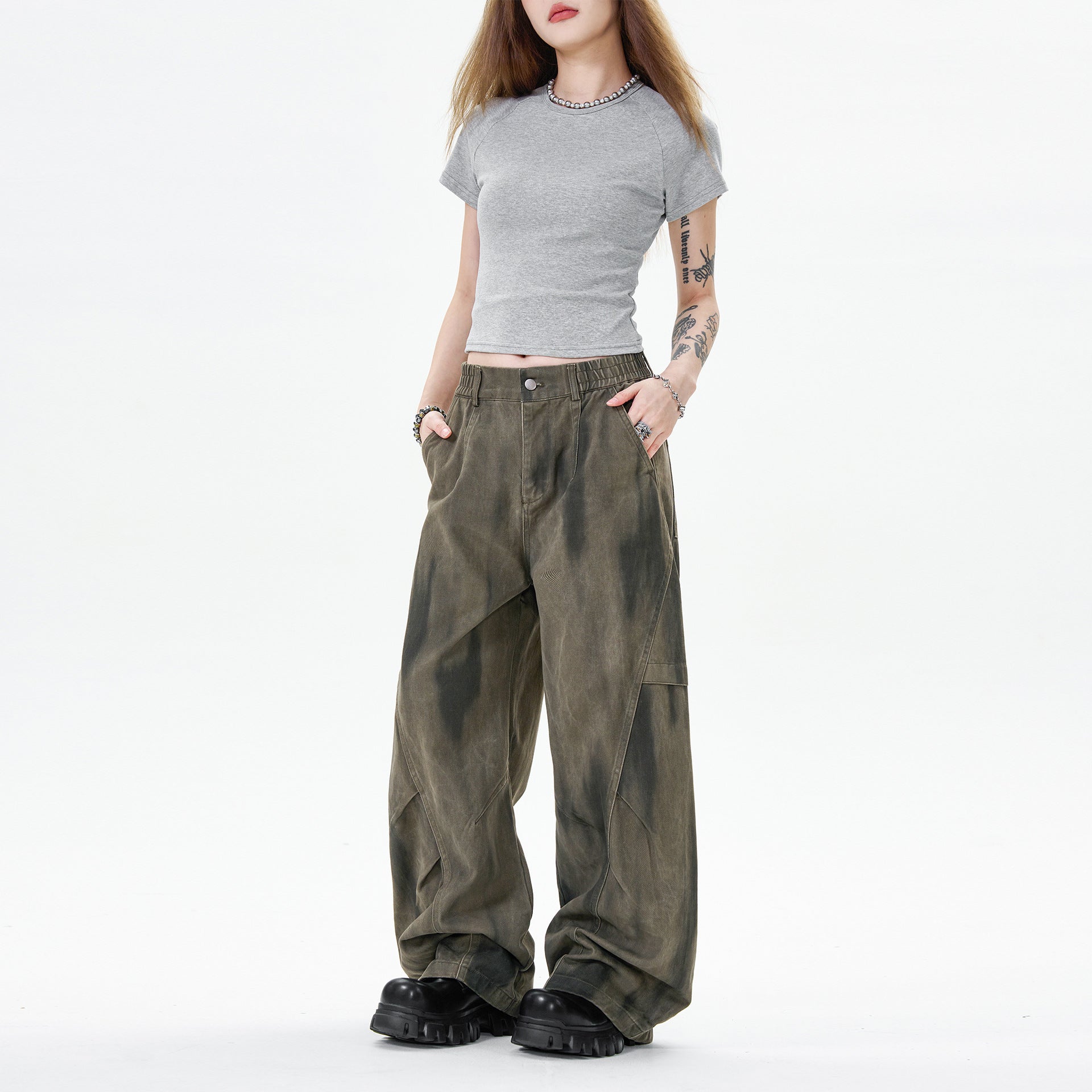 OREETA丨Pleated Wide-Leg Casual Straight-leg Pure Cotton Overalls